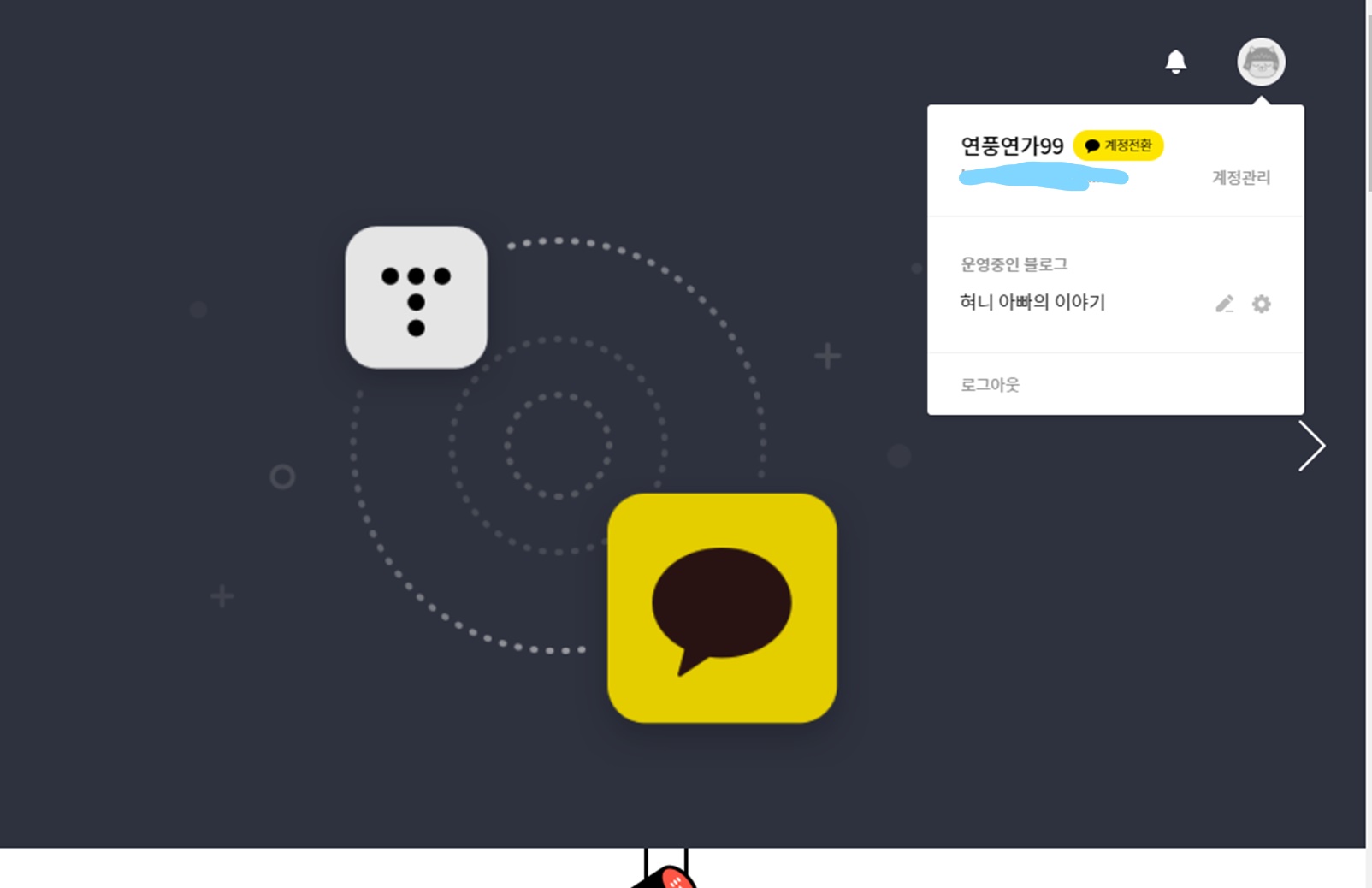 티스토리 로그인 하시면, 운영중인 블로그 옆에 글쓰기 버튼과 설정 버튼이 있습니다.