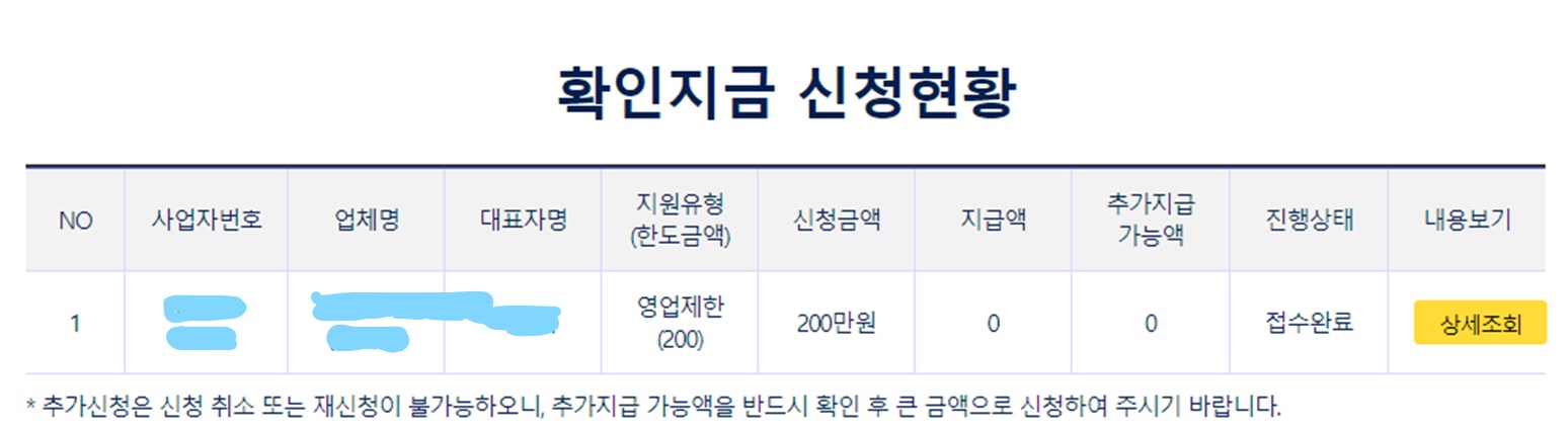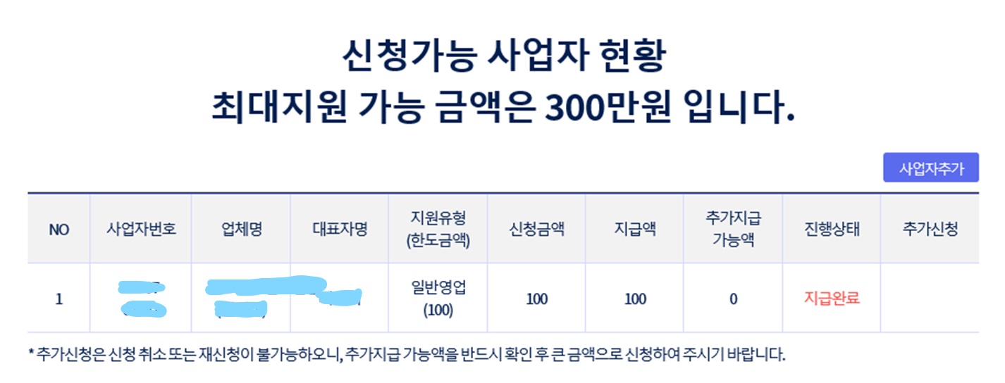 저희 지인분은 영업제한업종임에도, 그 당시 확인절차가 필요하여 전체 지급이 되지 않고, 일부 (100만원)만 지급이 되었습니다.