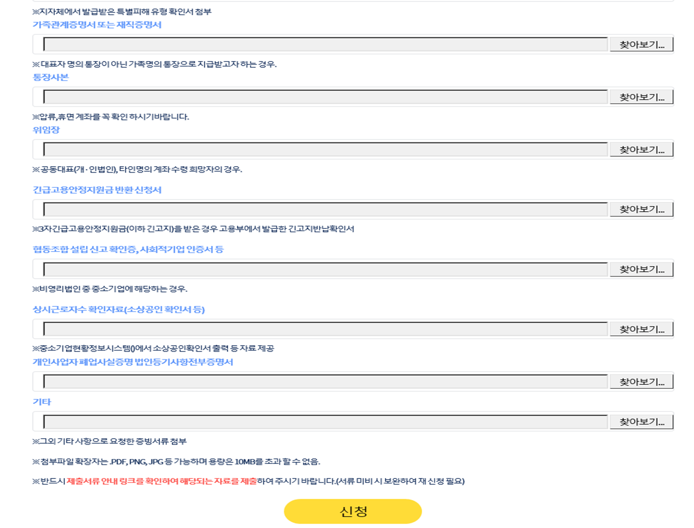 위와 같이 기본정보 및 신청서류 필요서류들을 넣는데요.