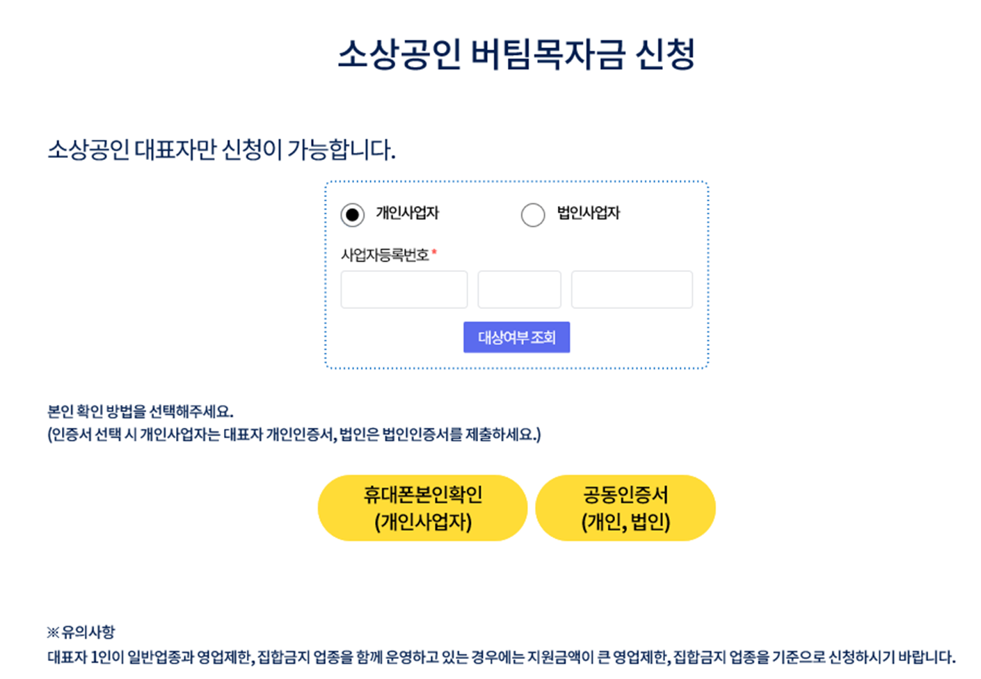 소상공인 버팀목자금 소개, 신청하기, 신청결과 확인 등