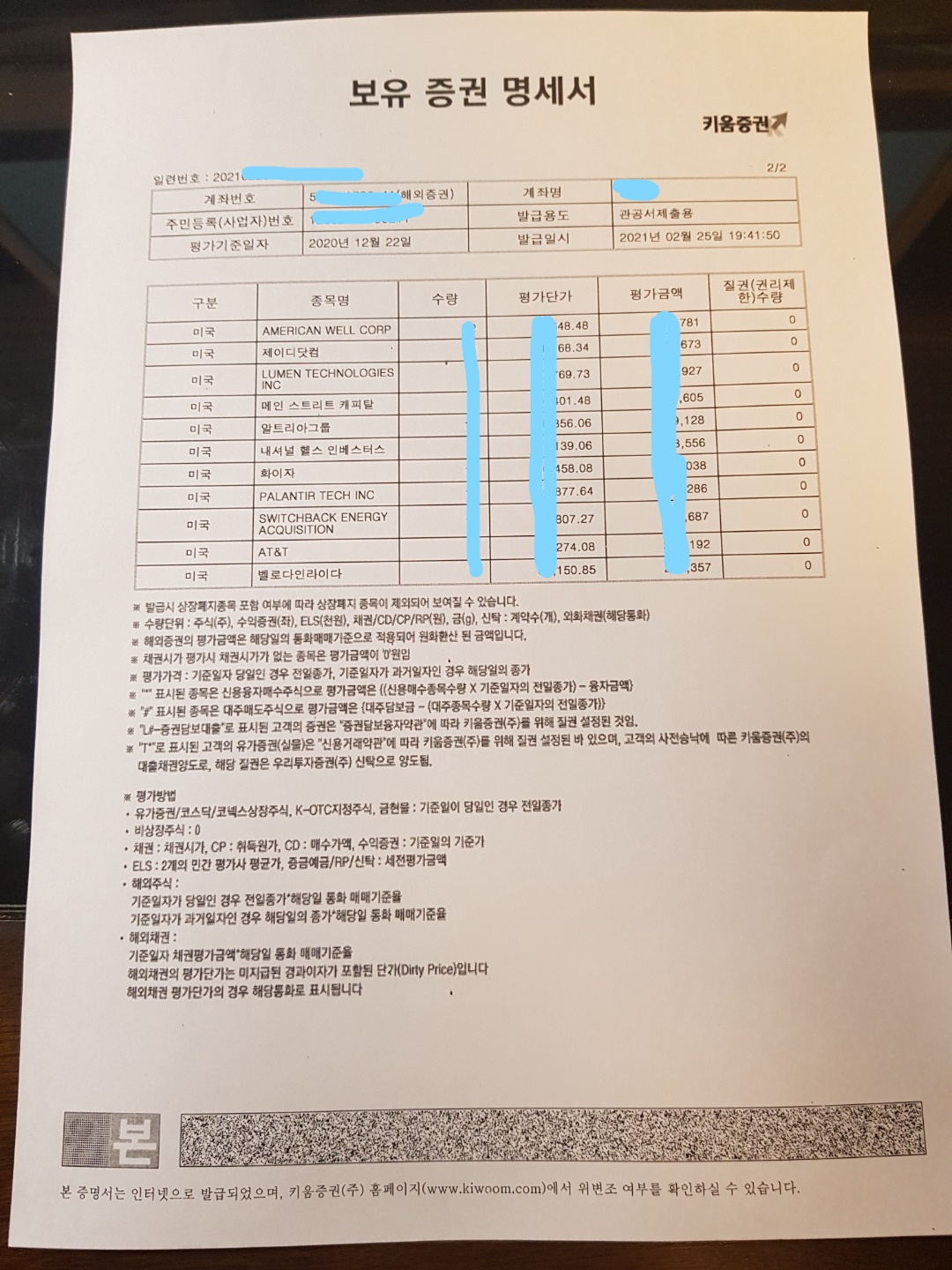 구체적인 종목과, 주식수는 이렇게 보유 증권 명세서 라는 문서에 나오게 됩니다.