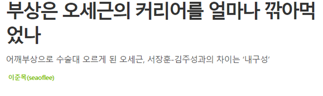 이런 기사가 나올 정도로 부상이 잦은 선수였습니다. 참으로 안타까운 일이지요.