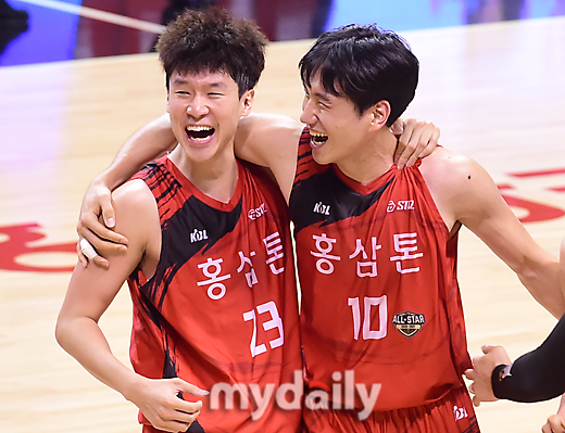 그리고 리그 최고의 3점슛터로 거듭난 불꽃남자 전성현(23번), 2년 연속 최우수 수비상을 수상한 문성곤(10번)