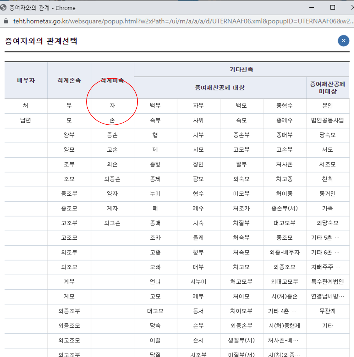 증여자와의 관계를 입력해야 되는데요.