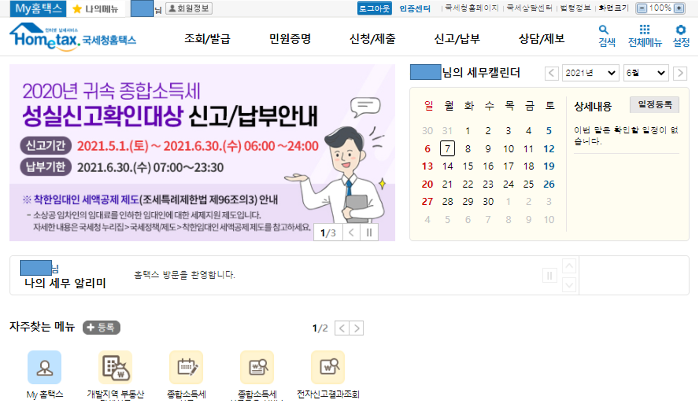 먼저 국세청 홈택스 사이트에 접속합니다.