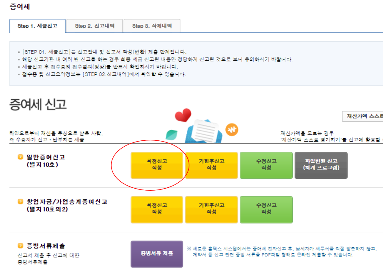 홈택스 미성년자 해외주식 증여 신고 - (2. 증여신고 시행)
