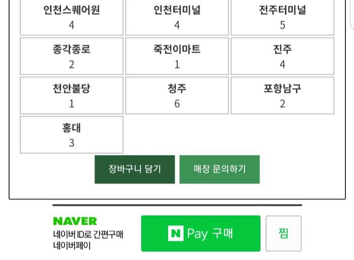 해당하는 지점을 선택하고, 장바구니에 넣습니다.