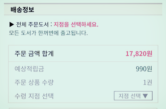 일단 지점의 책이 있는 것을 확인하고 장바구니에 담습니다.