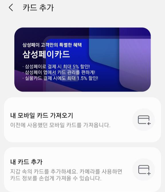 내 카드 추가 버튼을 눌러주세요.