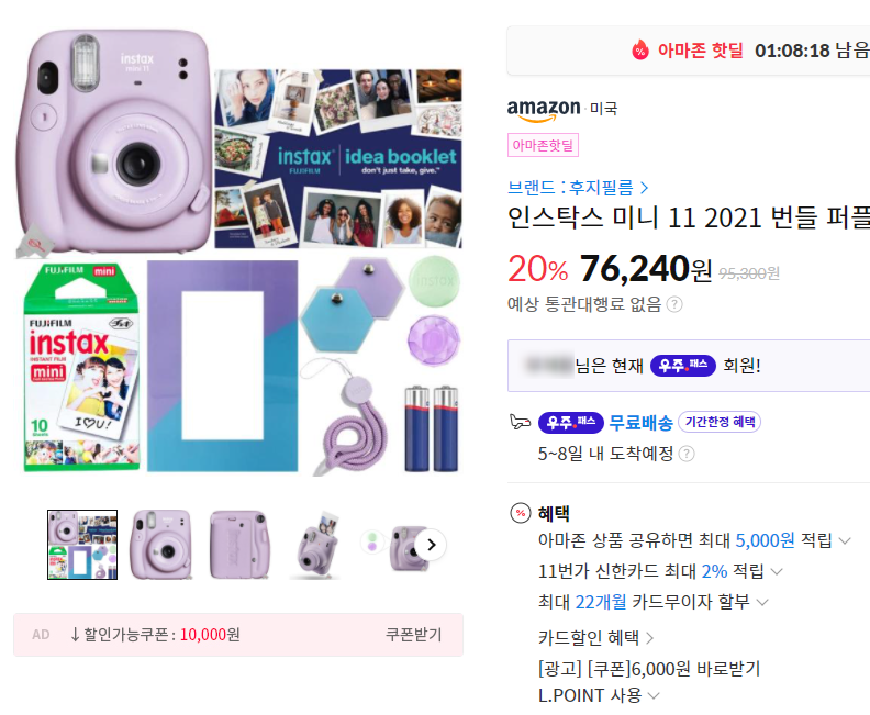 저는 인스탁스를 총 2개를 구매해서 한번에 쿠폰을 다 썼습니다. ^^