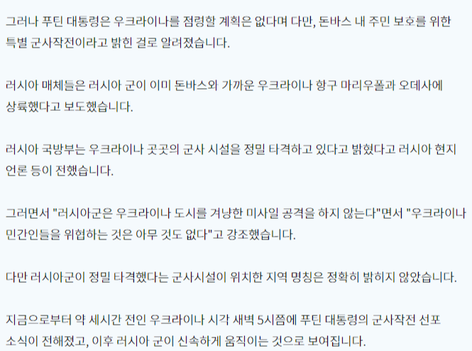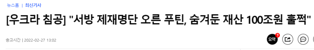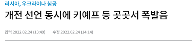요즘 연일 우크라이나에 대한 러시아의 기습침략에 대한 기사가 화제입니다.