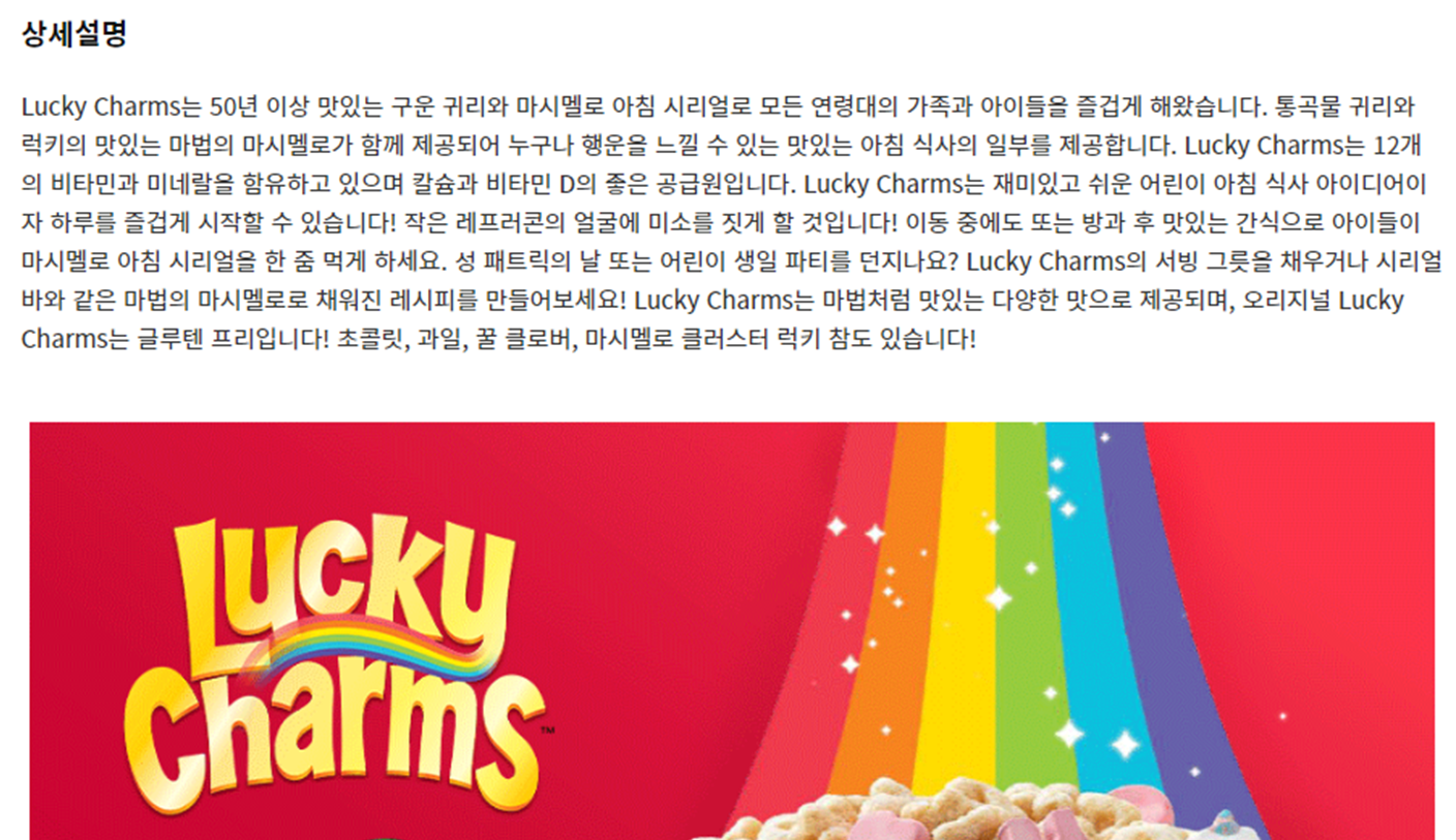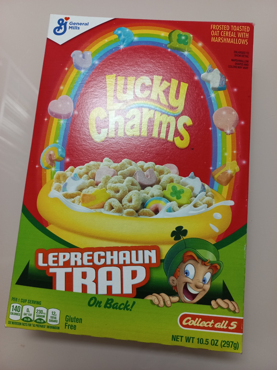 Lucky Charm 글루텐 프리 아침 시리얼 입니다.