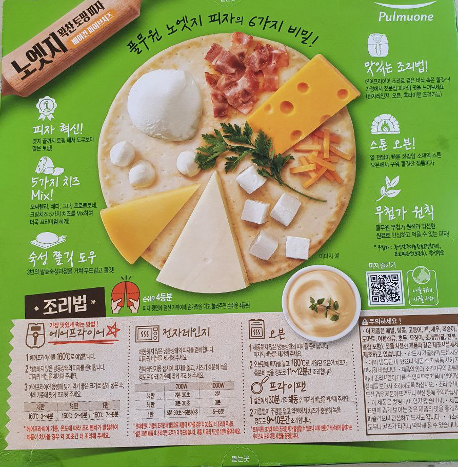 에어프라이어, 전자레인지, 오븐, 프라이팬 이렇게 여러가지 방법으로 조리할 수 있습니다.