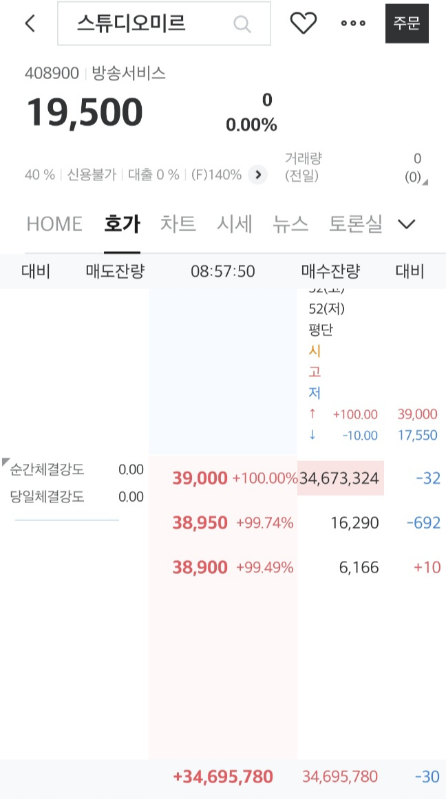 이렇게 갑자기 따블이 되어 있습니다. 원래 19500원이었던 공모가에 비하면 그냥 두배이군요.