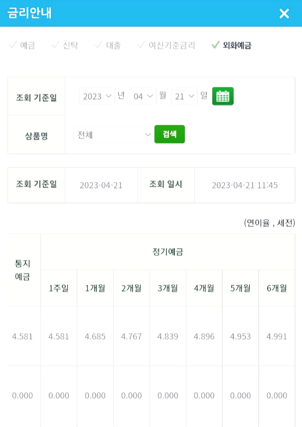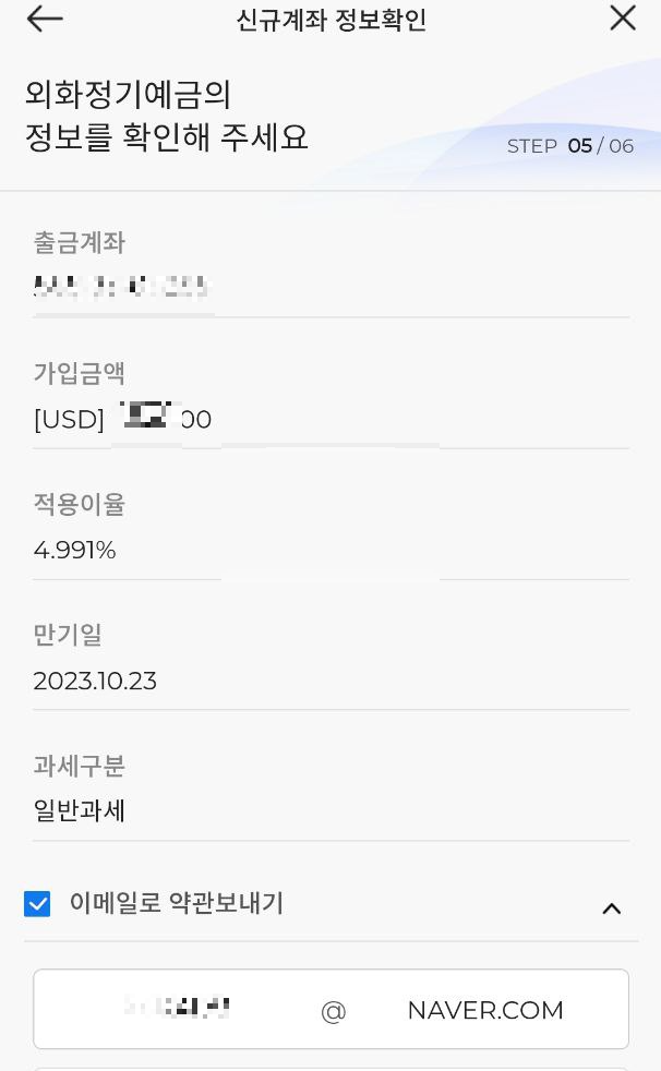 같은 은행의 정기예금이 3.9% 밖에 안되는데, 미국 달러화는 6개월인데도 4.991%이니 정기예금을 꾸준히 해야겠습니다. ^^