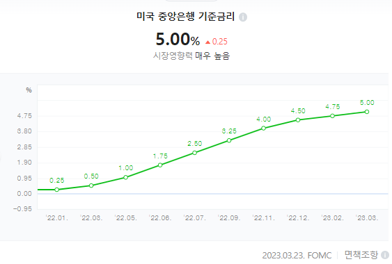 미국 기준금리가 1년 남짓한 기간 동안 무려 5%에 달할 정도로 올라있다보니, 미국의 돈값에 맞추어 달러 예금도 올라가네요.