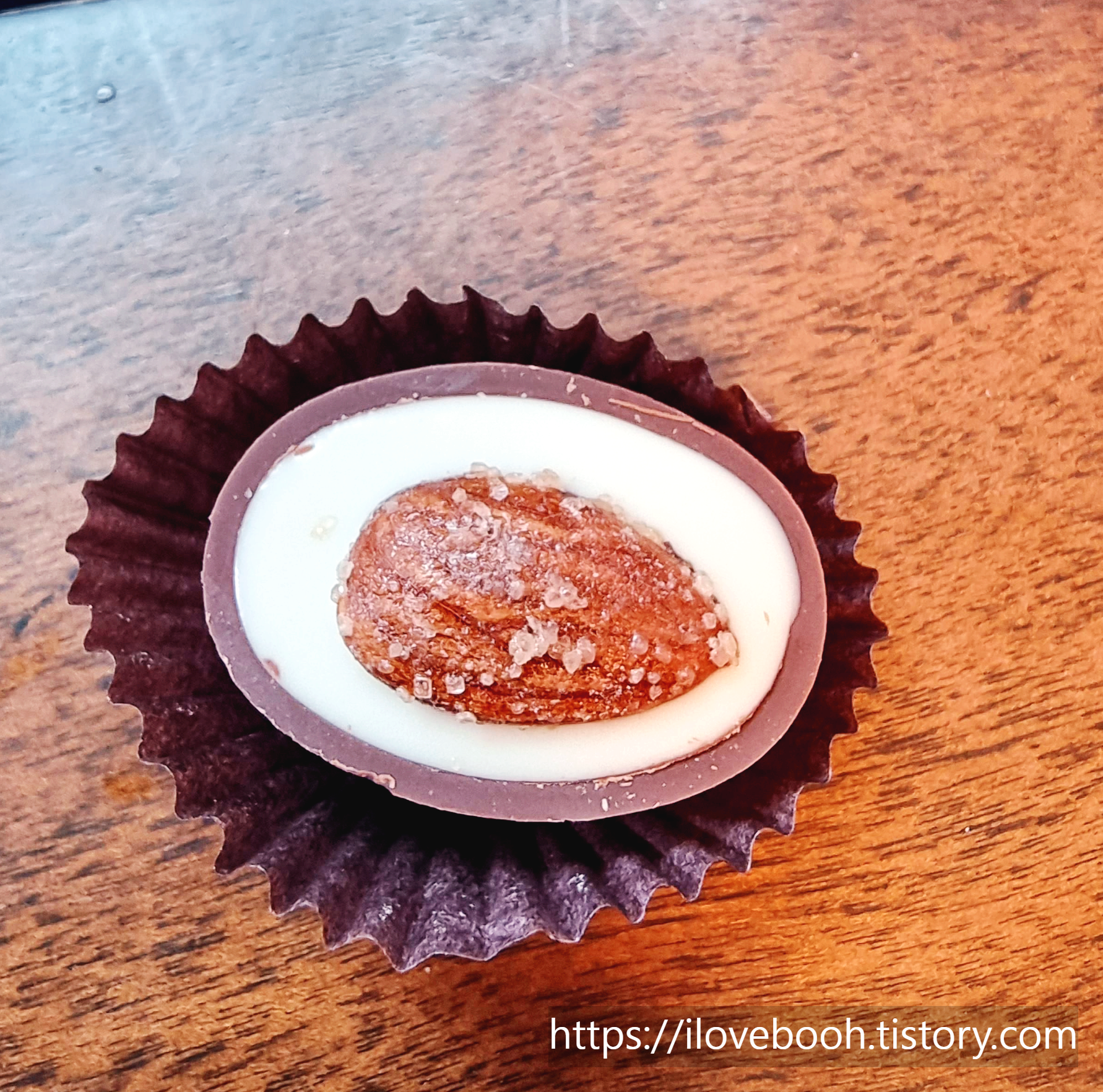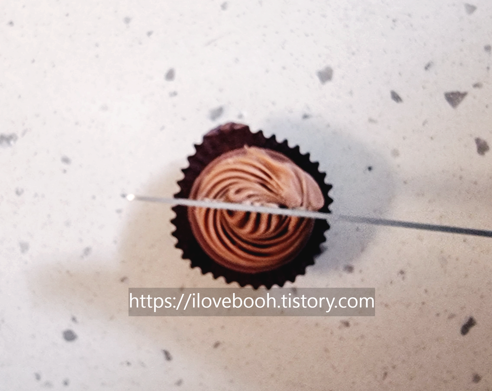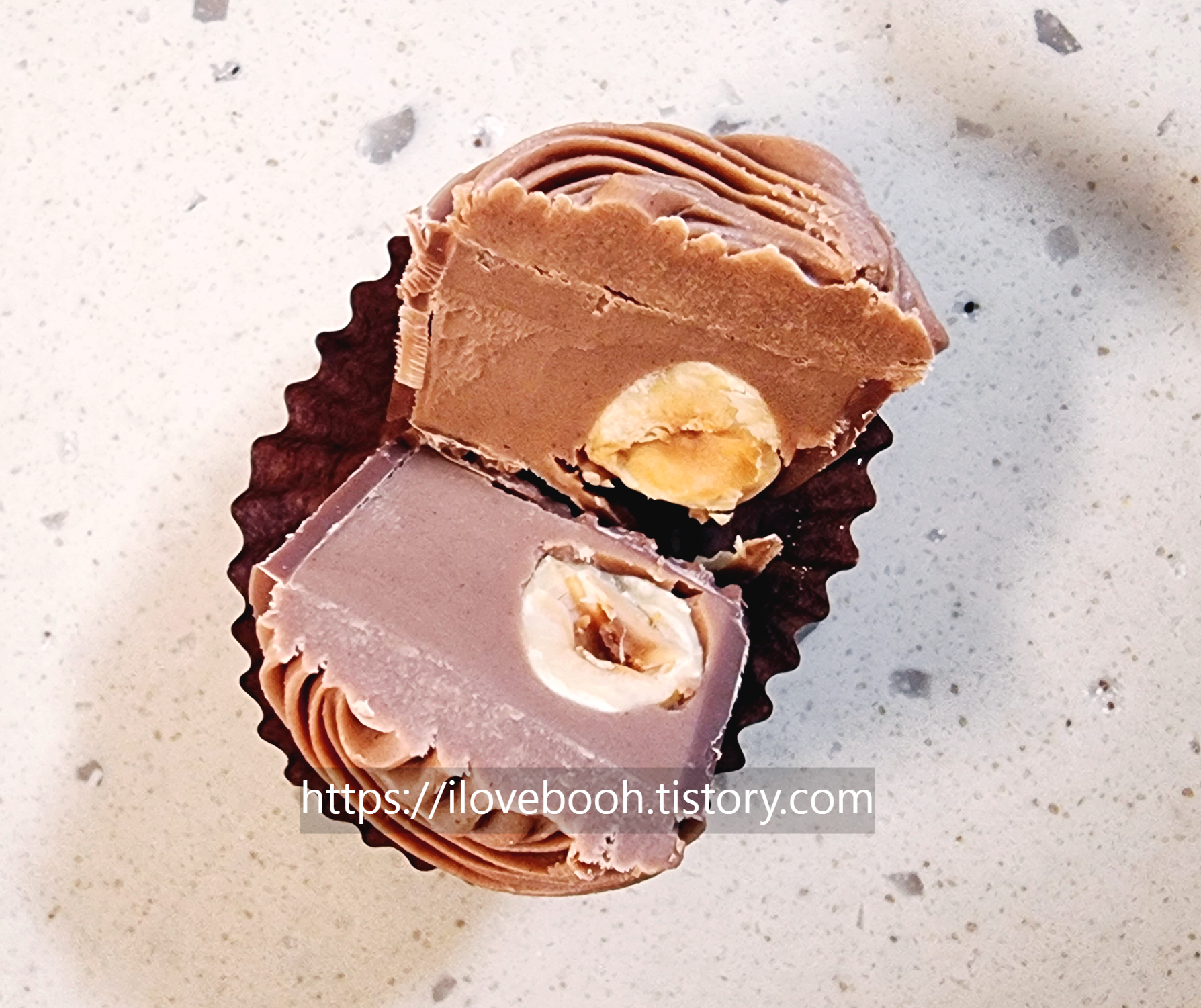 잘라보면 그냥 초콜릿이 없고 이렇게 견과류가 있거나 다른 초콜릿이 들어있습니다.
