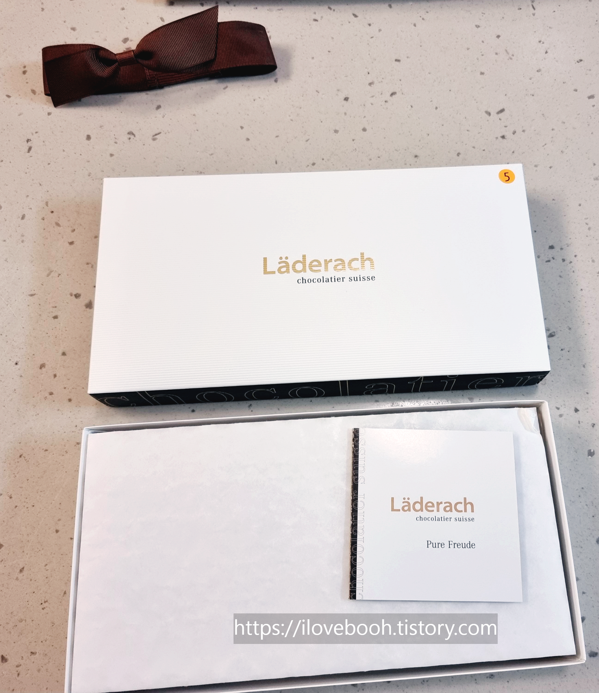 레더라 초콜릿의 상자를 열어보니까 마치 설명서처럼 종이가 들어있네요. 신기합니다.