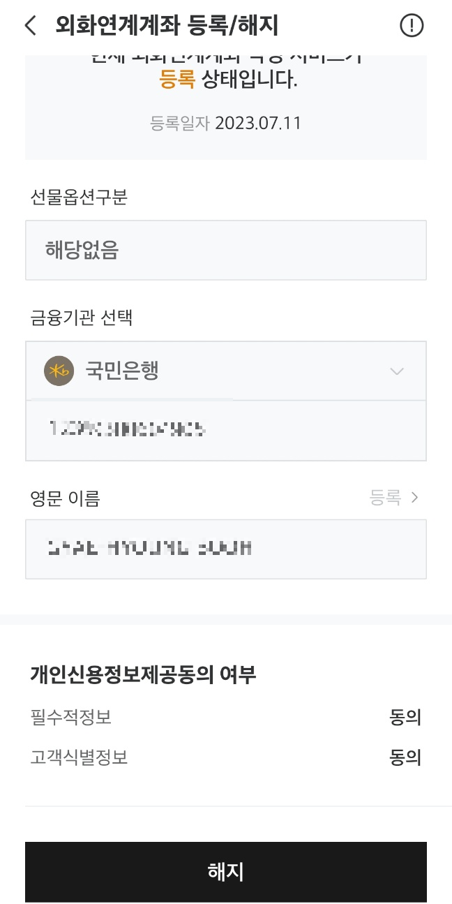 저는 외화 예금이 만기가 되어서 은행에서 출금한 후 미래에셋증권에서 지정한 계좌로 입금하였습니다.