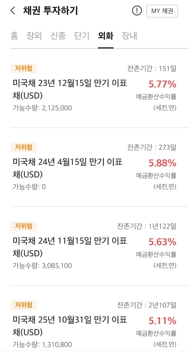 외화 예금을 하다가 수익률이 더 좋은 것 같아서 외화채권 투자에 도전해 보았습니다.