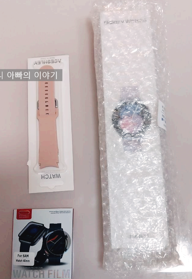 워치 본체와 액정 보호 필름, 그리고 서비스로 받은 스트랩입니다.