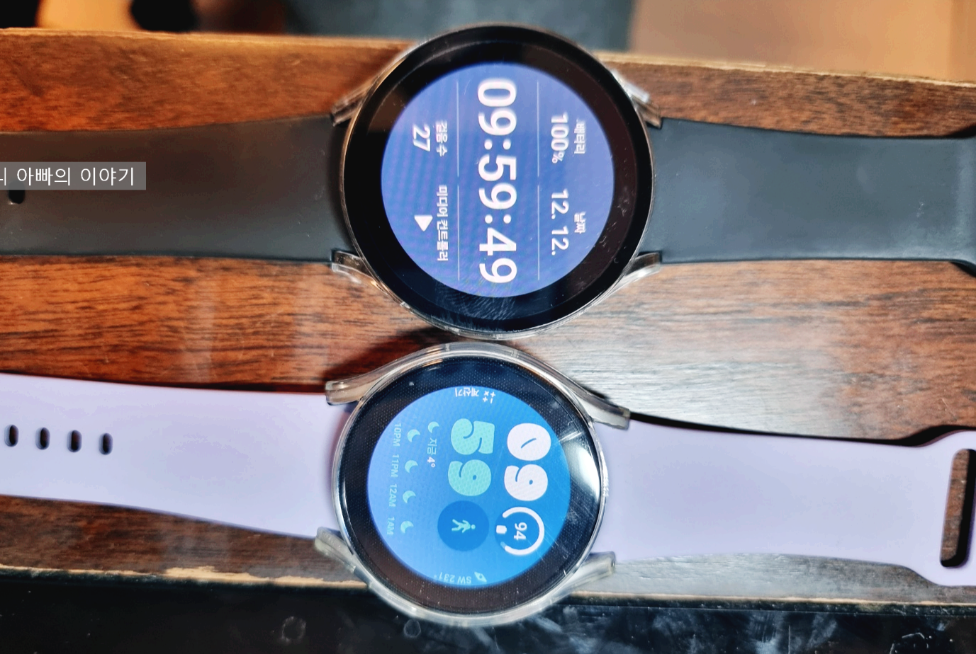 제 시계인 워치4 44mm 와 혀니의 워치5 40mm을 비교해보았는데요.