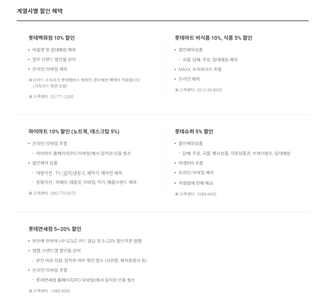 롯데그룹 혜택 이외에 카드 자체의 혜택은