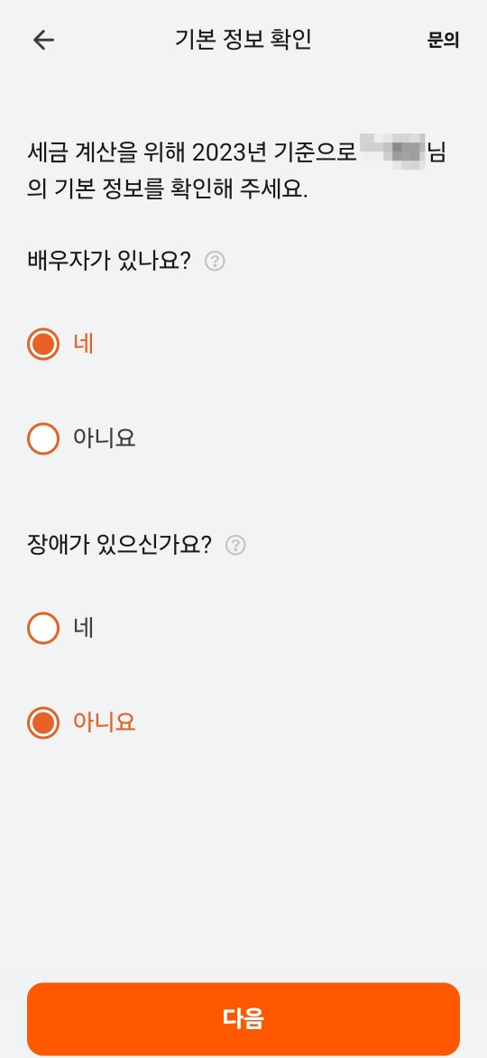 어플을 깔고나서, 종합소득세 신고 버튼을 눌러보면